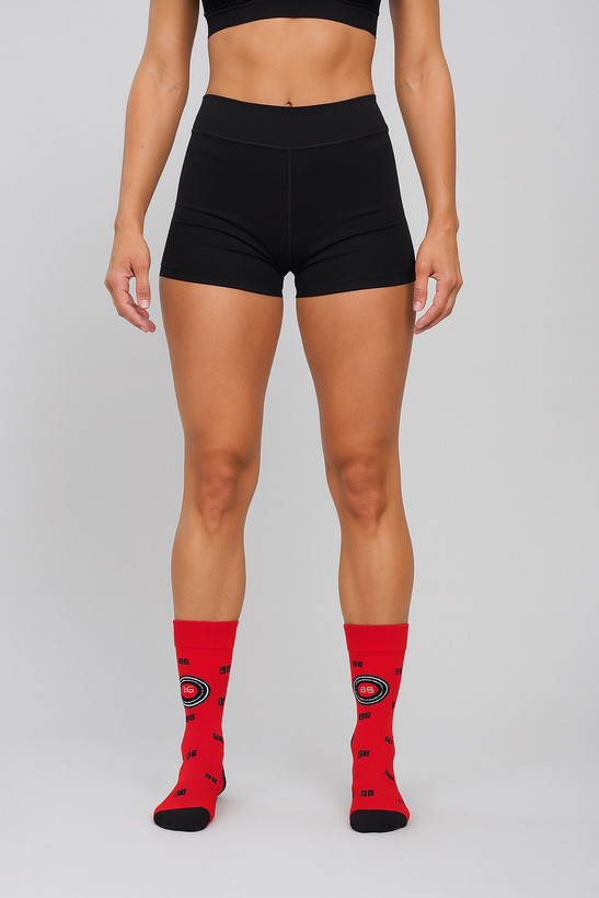 جوراب اسپرت طرح BB با طراحی حرفهای و رنگ قرمز جذاب، انتخابی عالی برای علاقهمندان به استایل ورزشی و خیابانی است.